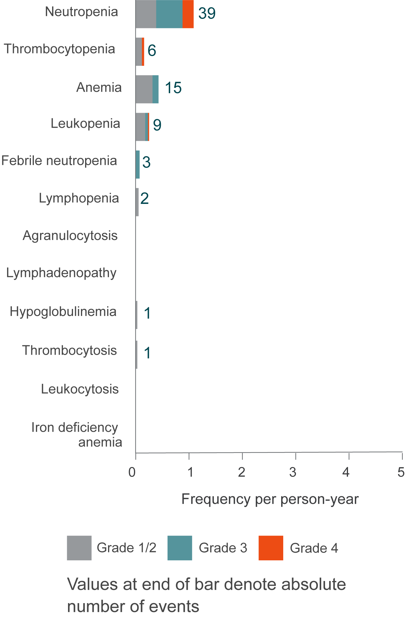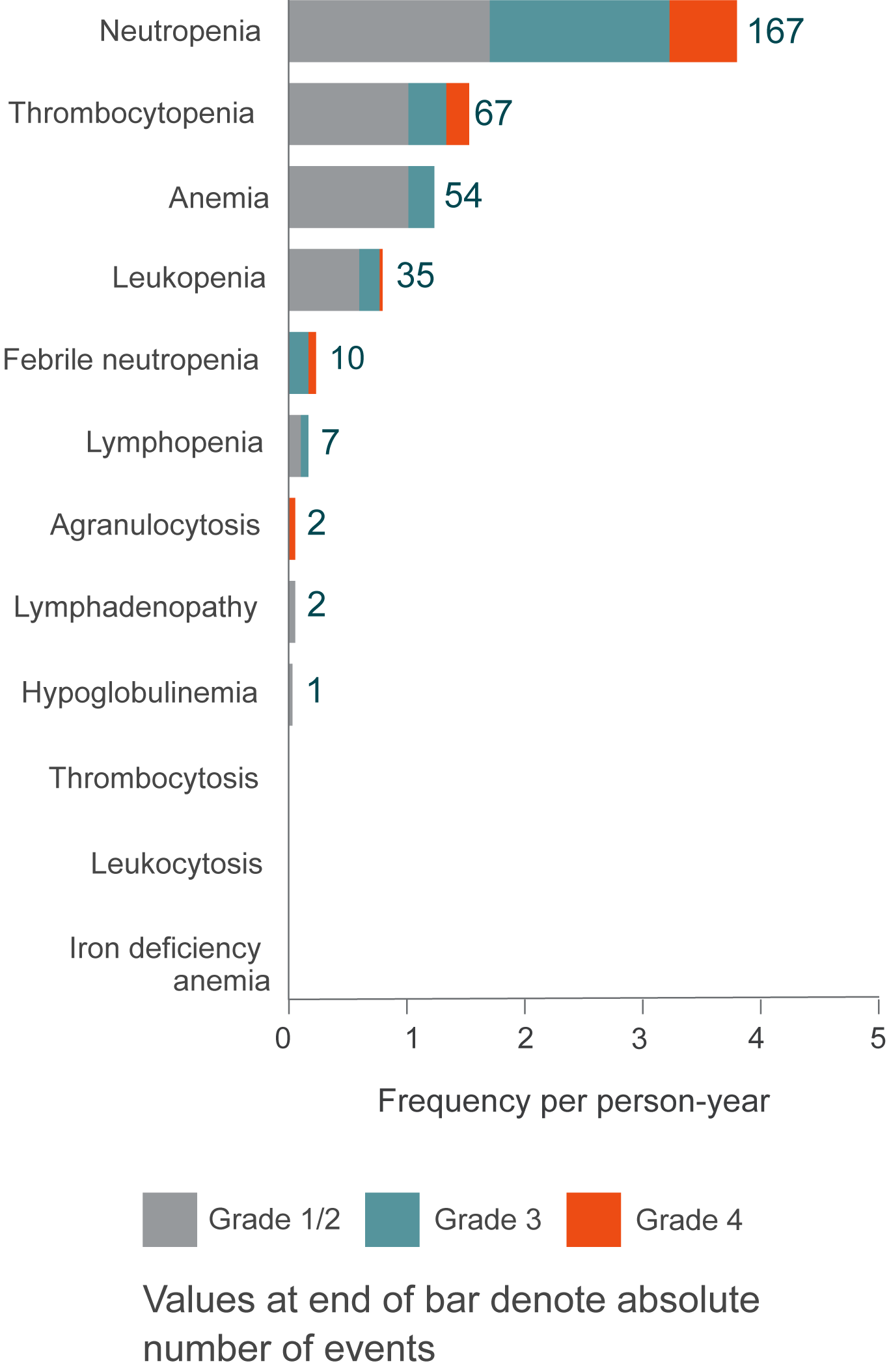 Hematologic treatment-emergent adverse events (exposure‑adjusted)1